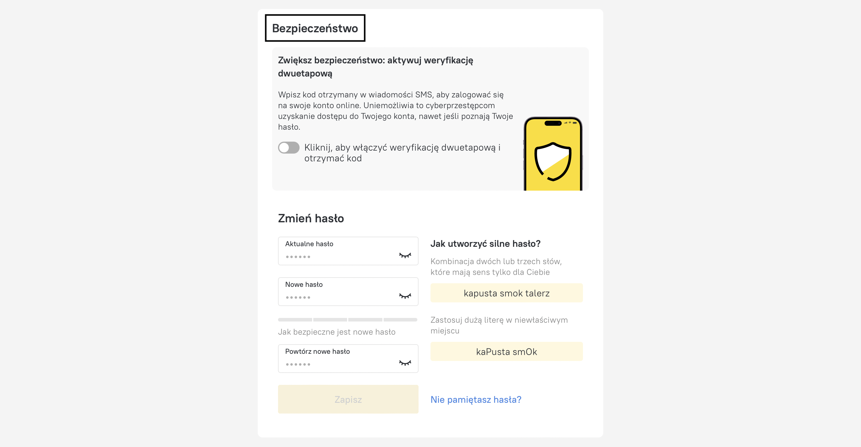 - Inteligentny system: w przypadku podejrzanego logowania wyślemy wiadomość SMS na Twoje urządzenie 2FA, aby Cię o tym powiadomić.
