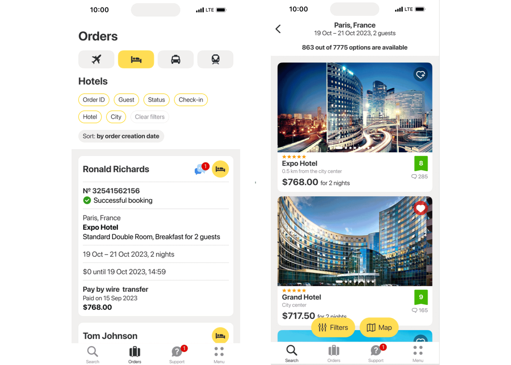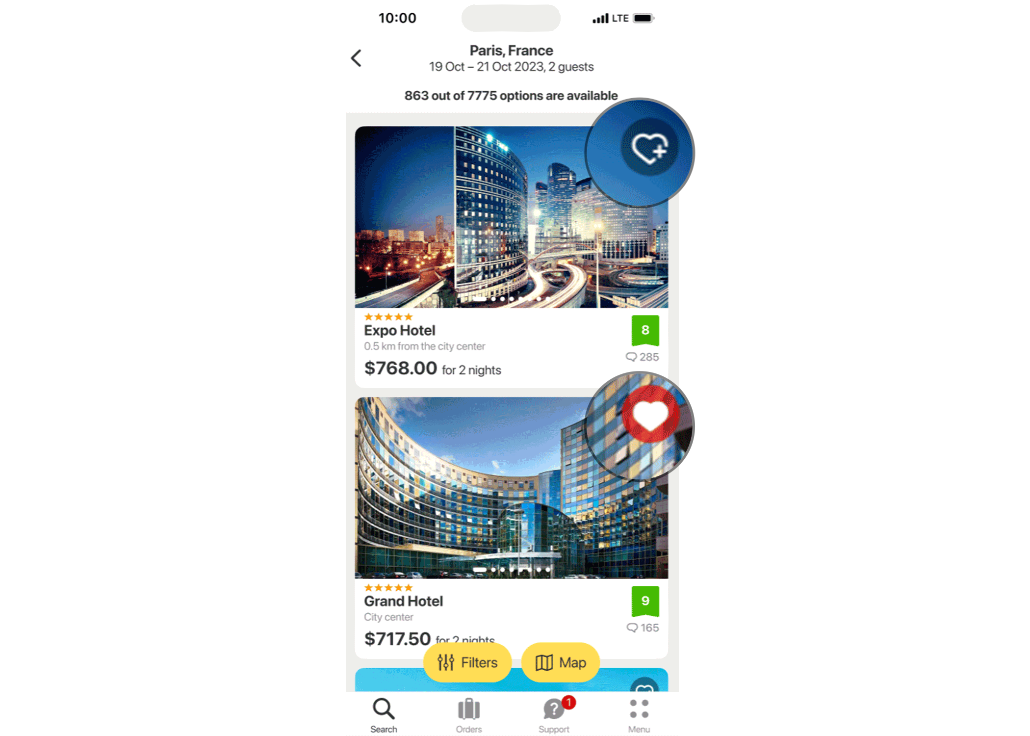 Upon receiving confirmation from the client, you can book the required service directly in the app or save it for later and complete the booking when you return to the office. The RateHawk app grants you the flexibility your business needs to go above and beyond for your clients, no matter where you are.