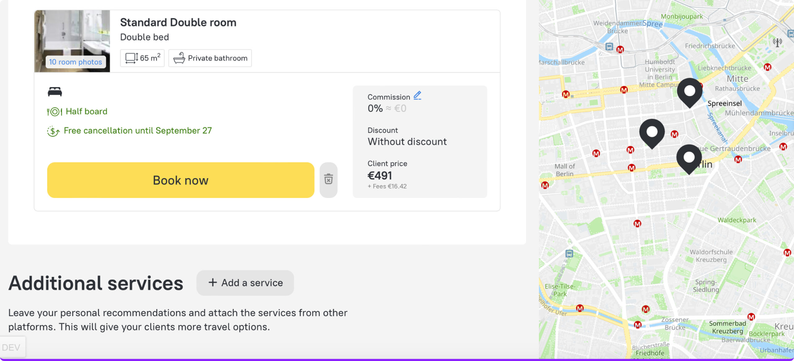 You can assign a single commission size for all hotels or set it individually for each option in the list. This information is only visible to you — the client will only see the final price.