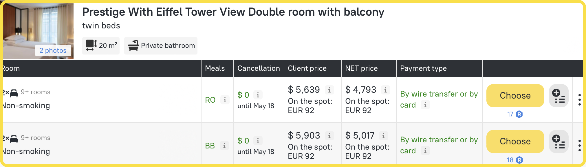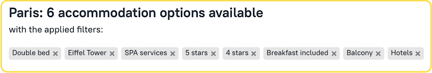 Now, we can see that there are 6 hotels in Paris available that match what our clients are looking for.
