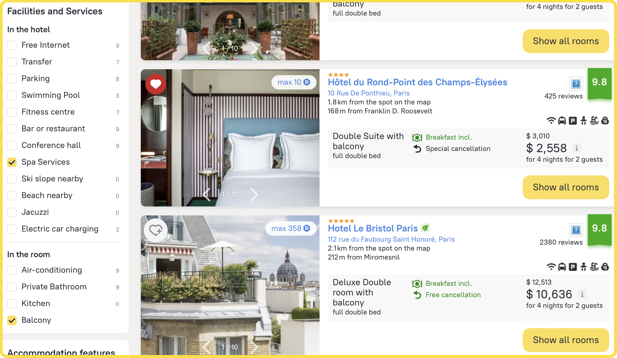 They have also requested to utilize SPA services at the hotel. By scrolling down to “Facilities and services,” you can select SPA services. Now, you’ll only be served options in line with the client’s requests.