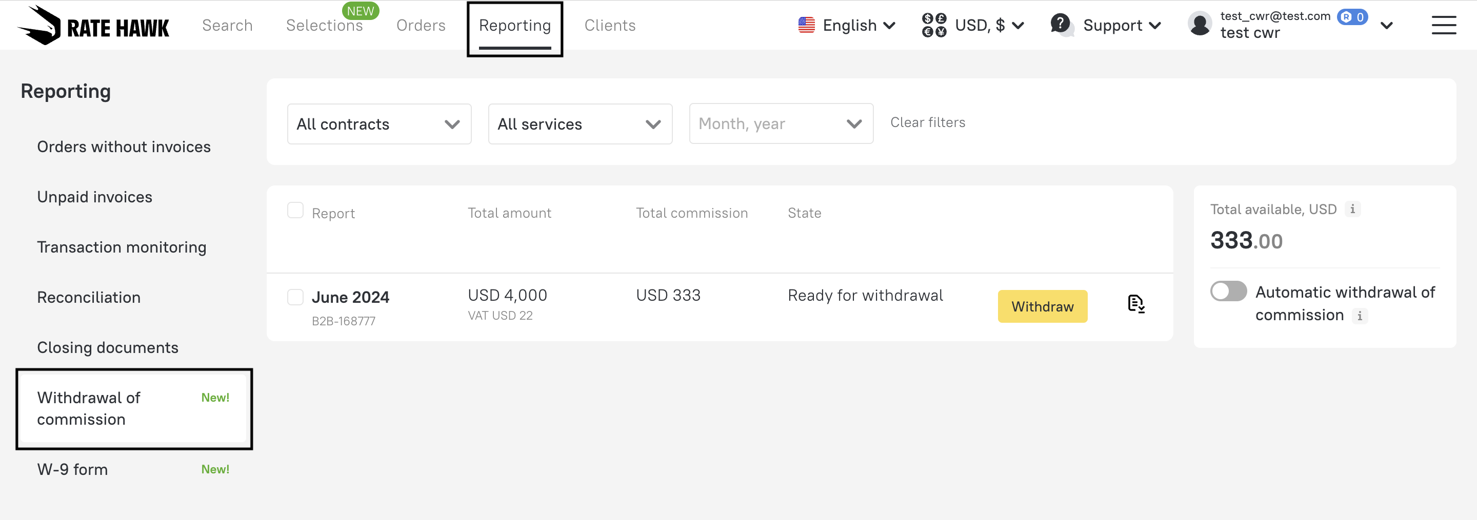 Agents with Master and Finance roles have the autonomy to manage commissions either directly, one by one, or by setting up automated withdrawals — both for all bookings made within a month.