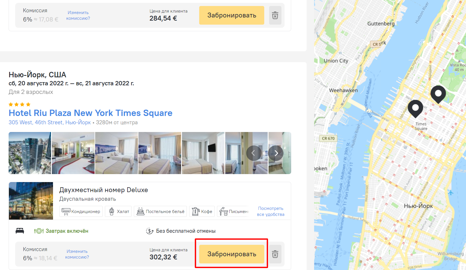 В отельных подборках на RateHawk есть специальная графа «Ваша комиссия на услуги проживания».