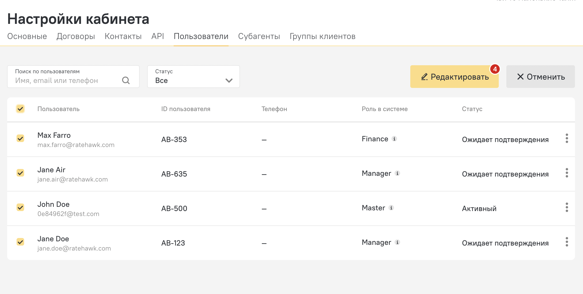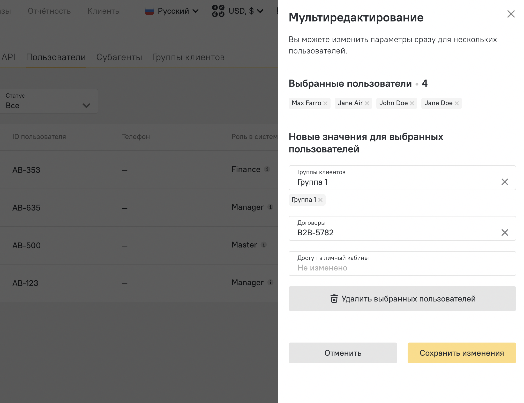 Мультиредактирование даёт доступ к большому массиву данных, так что функция будет доступна только пользователям с ролью «Мастер» в «Личном кабинете».