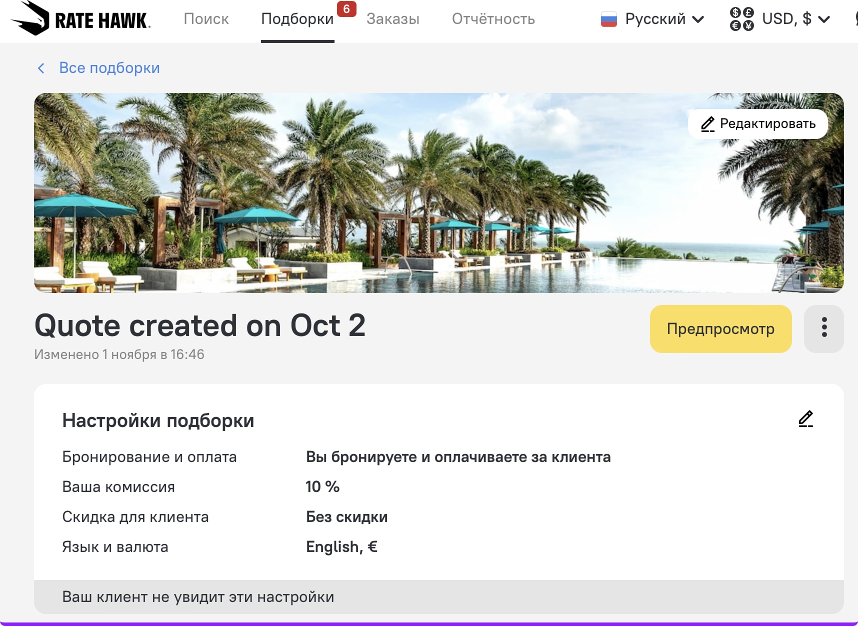 Ваши клиенты не просто сравнивают отели — они выбирают эксперта, которому доверяют свои путешествия. Аккуратно оформленная персональная подборка поможет вам выделиться, укрепить доверие и быстрее закрыть продажи.