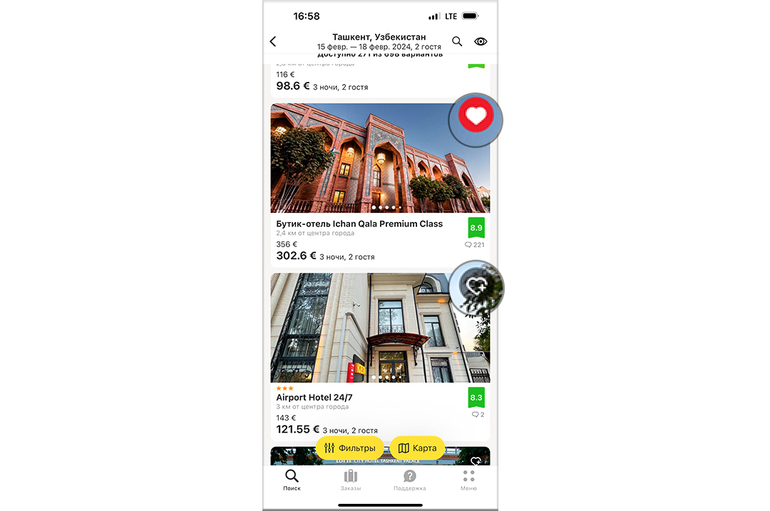 Возможность 2. Просматривать отели и сохранять их в «Избранное»