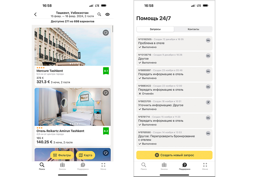 Возможность быстро получить помощь или ответ на вопрос однозначно сделает любую работу эффективнее. Если у вас установлено мобильное приложение, вы можете связаться с нашими специалистами через раздел «Заказы»: для этого перейдите в нужное бронирование и нажмите «Создать новый запрос».