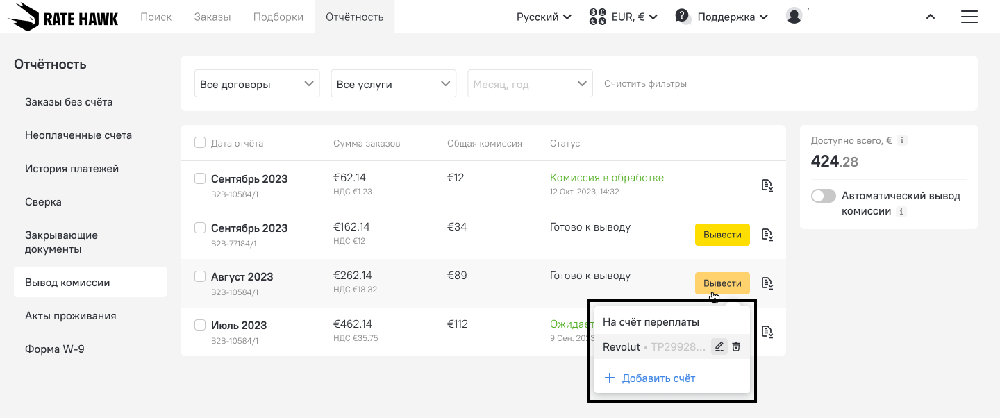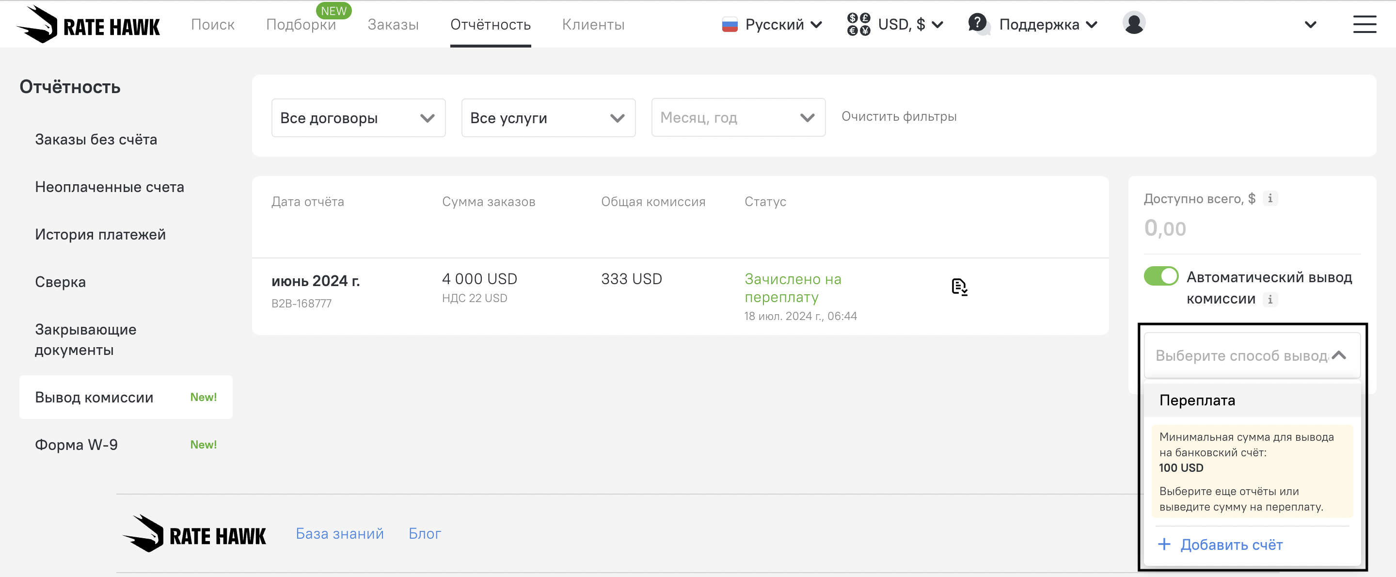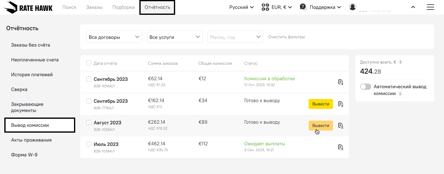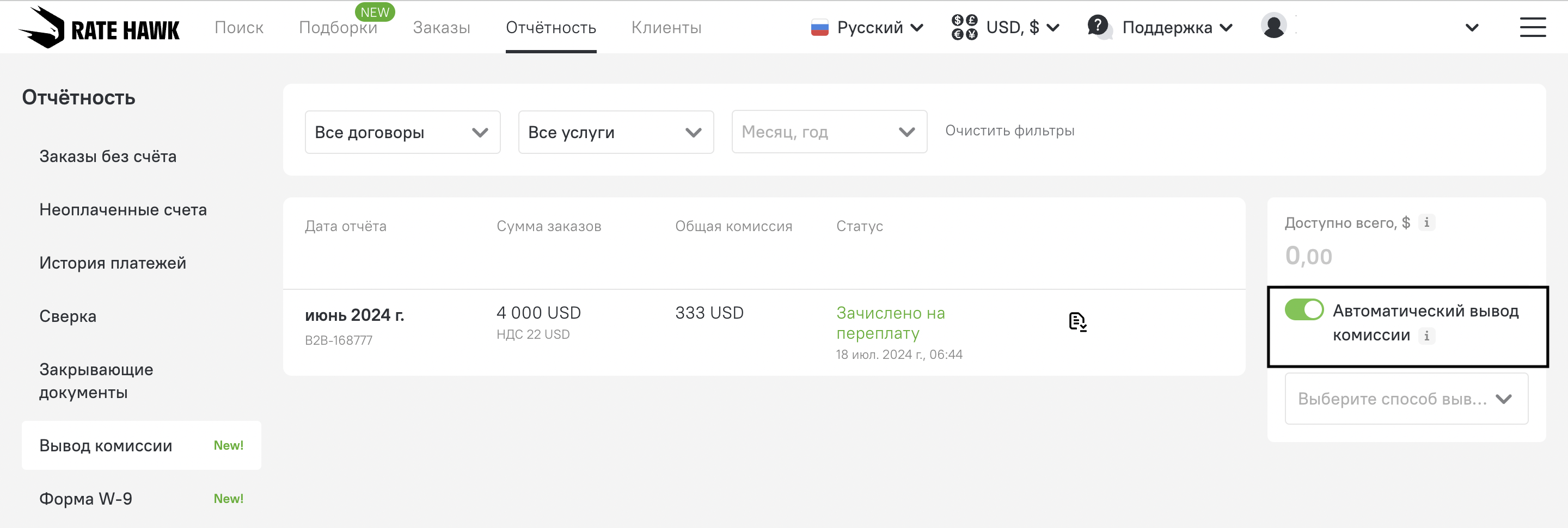 Настройте вывод комиссии прямо сейчас, чтобы максимально упростить свою рабочую рутину на RateHawk.