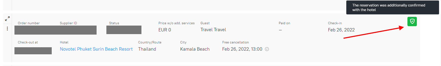 All bookings made on RateHawk.com are checked by the Pre-Check service. After the check is complete, a special icon appears in the top right corner of the booking row.