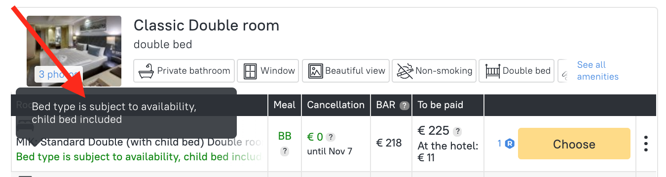 This depends on the stay terms of each hotel. If you entered 2 adults + 1 child (a child over 2 years old as a rule requires a separate sleeping place), then you need to select either the rate two persons with additional bed or room for three. If the rate for two persons doesn’t include an extra bed, then you will see this in the rate details.