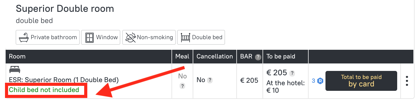 This depends on the stay terms of each hotel. If you entered 2 adults + 1 child (a child over 2 years old as a rule requires a separate sleeping place), then you need to select either the rate two persons with additional bed or room for three. If the rate for two persons doesn’t include an extra bed, then you will see this in the rate details.