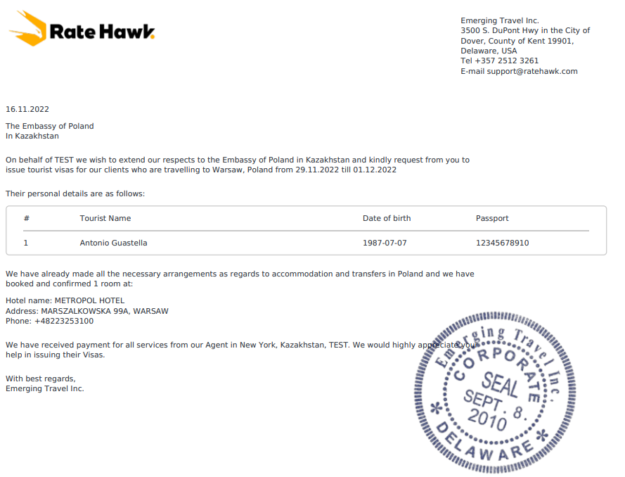 Some hotels don’t issue such documents, or only do so for additional payment. To simplify your work we have launched a new feature with RateHawk: you may now download visa vouchers quickly and for free from your online account, and then add them to the package of documents required to apply for the visa.