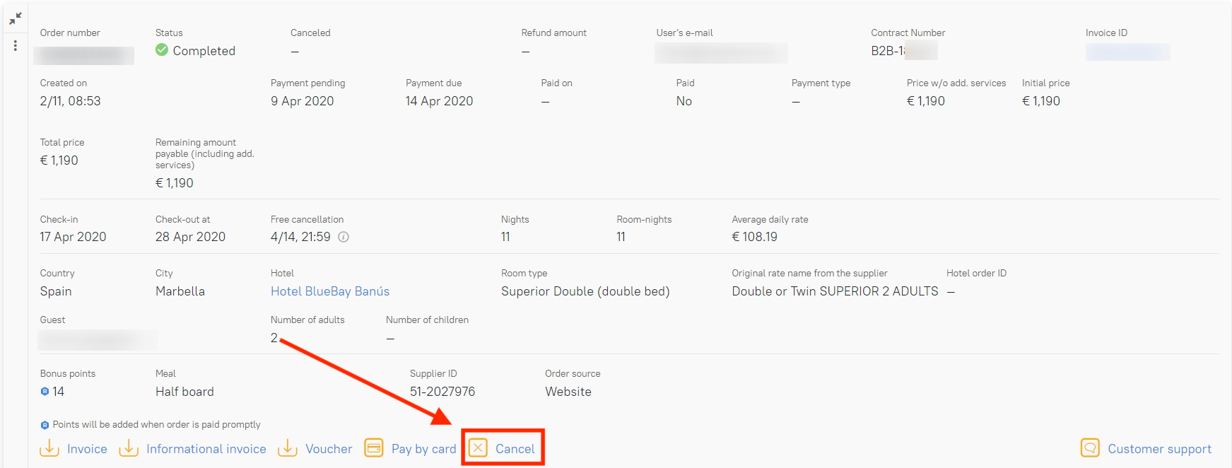 1. Cancel your booking in your Personal account. To do this, in the detailed order page click the Cancel button in the bottom.