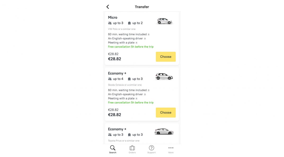 Using a smartphone you can set all the journey’s parameters, select the appropriate option, and pay for the booking.
